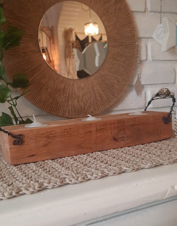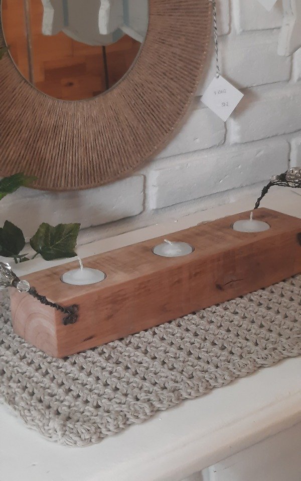 FUSTAS DE MADERA RECICLADA DECORADA DE 3 VELAS